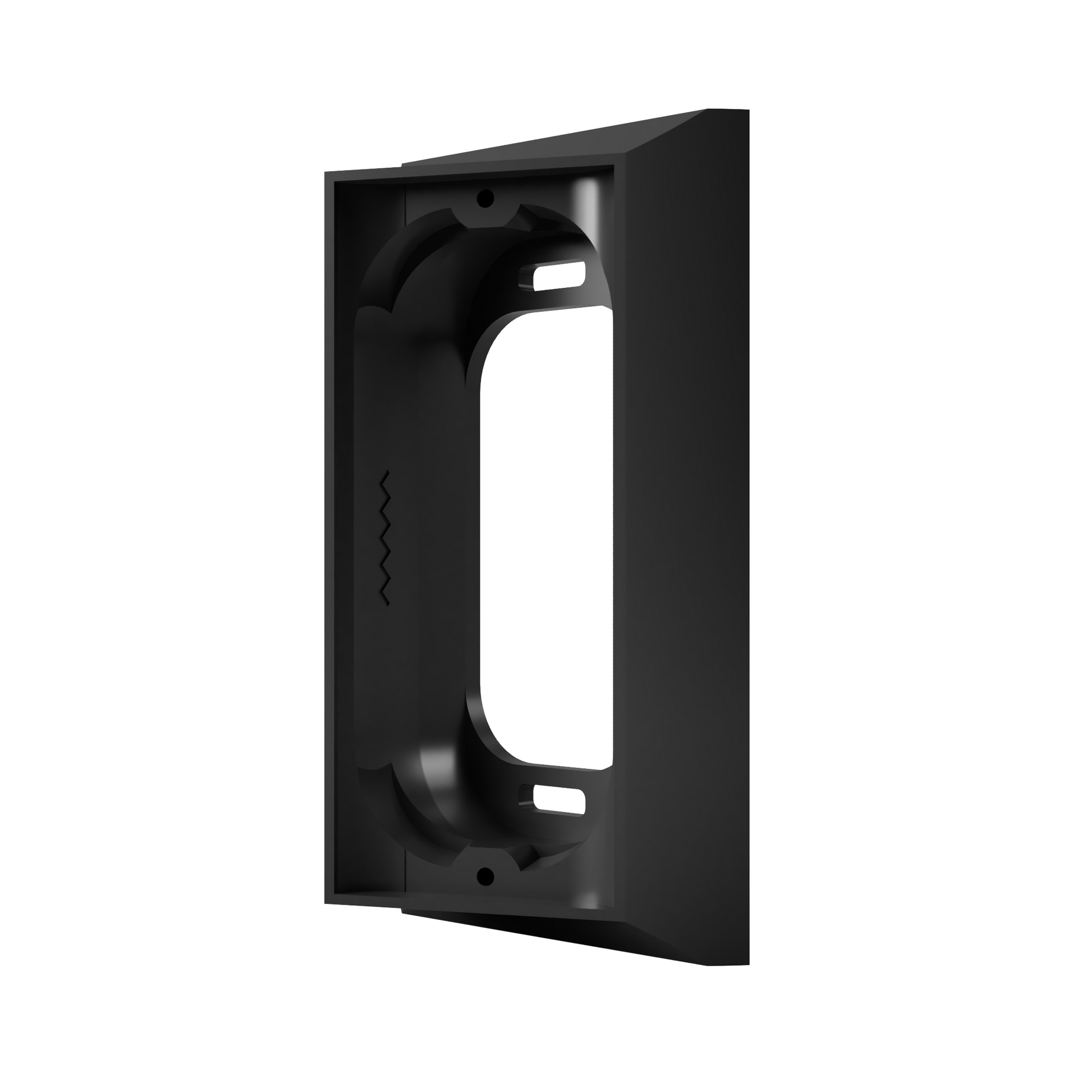 Replace a mismatched or oversized wall opening with a clean, finished look — and aim the camera toward your entry path. This 25° angled wall plate adapter by Hidden River Lab is made specifically for the Ring Wired Doorbell Pro (2nd Gen) (formerly commonly referred to as Ring Doorbell Pro 2). It provides a neat mounting interface on flat surfaces and adds a built-in 25° horizontal side angle to improve camera framing.